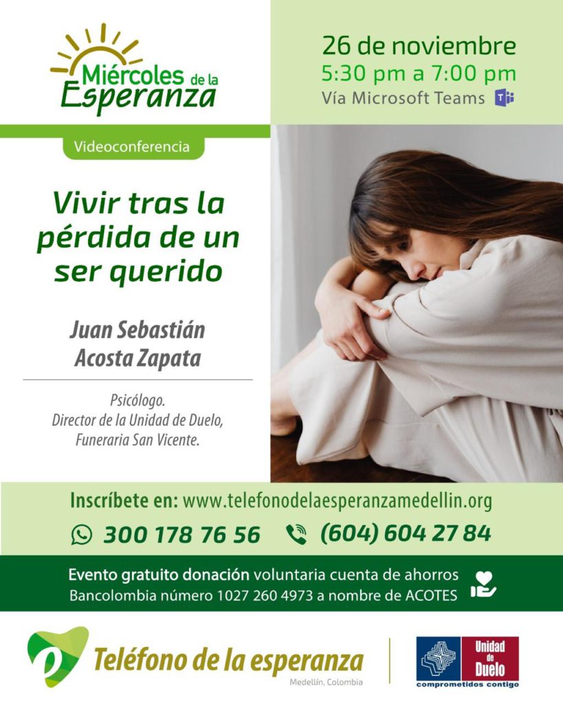 Con más de 50 años de trayectoria en el mundo hispanohablante y 22 años en Medellín, trabajamos con un equipo de voluntarios capacitados que ofrecen escucha, orientación y esperanza a quienes más lo necesitan.